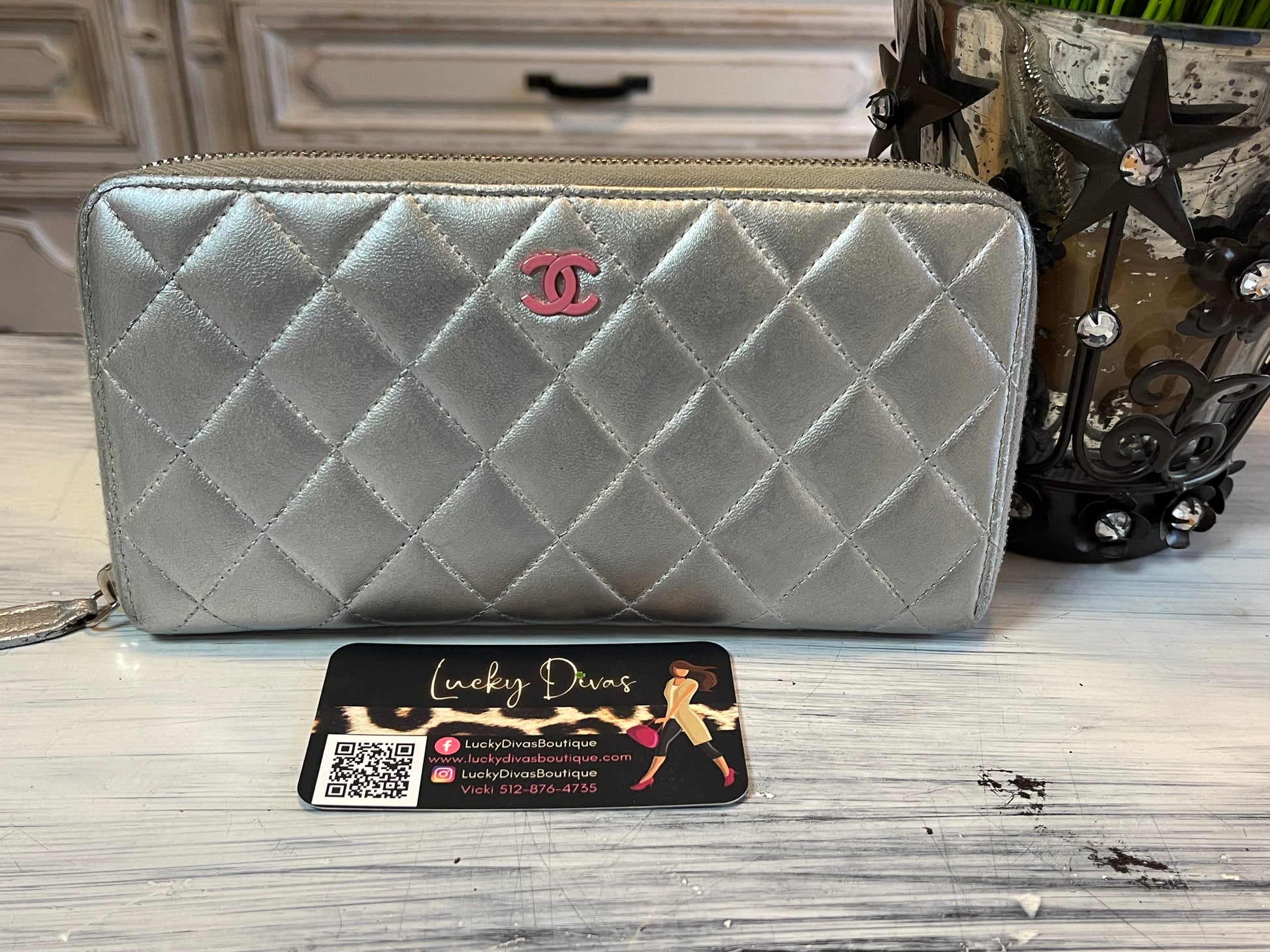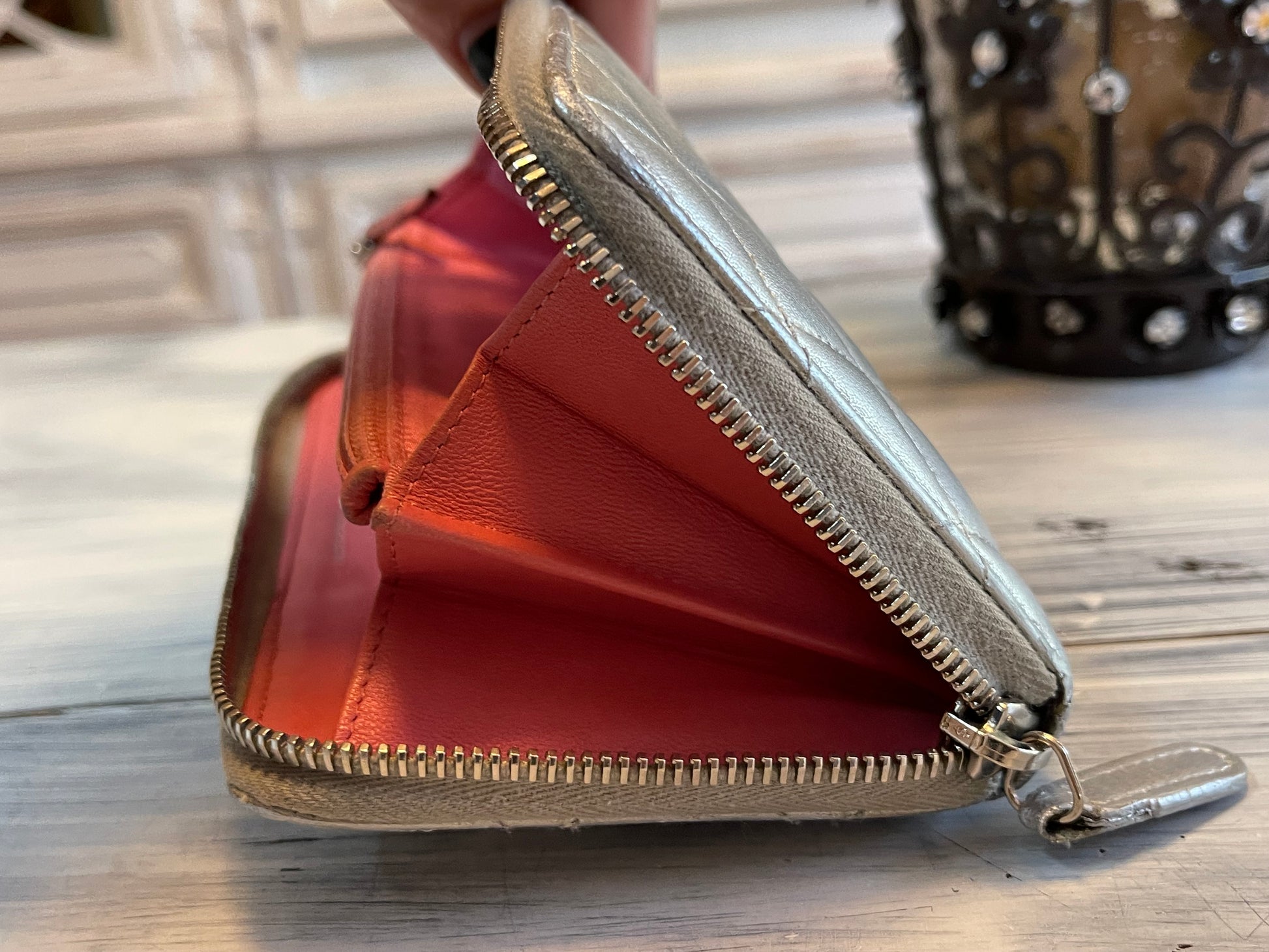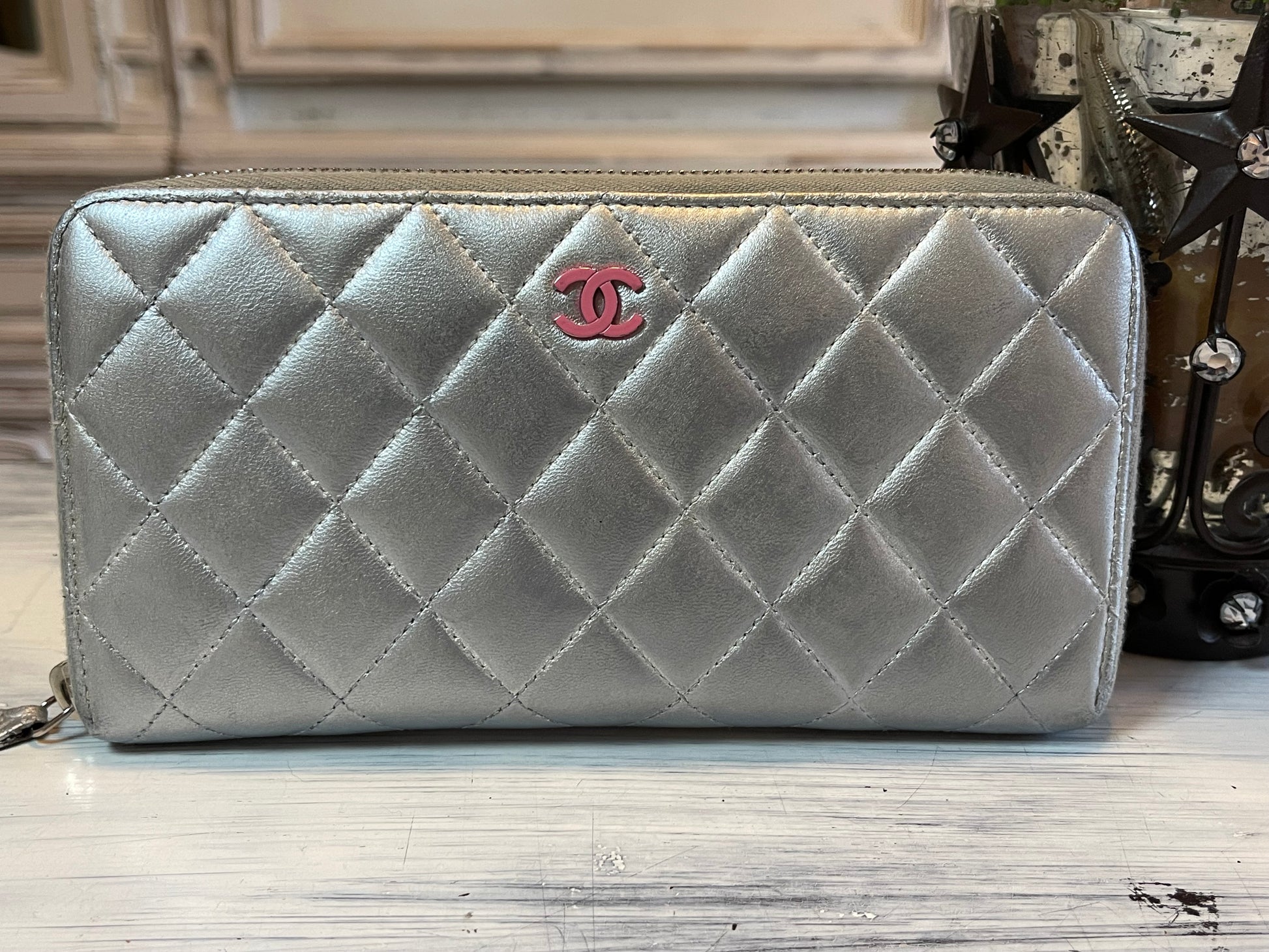 Chanel Quilted Mateslase Lambskin Silver Zip Around Wallet