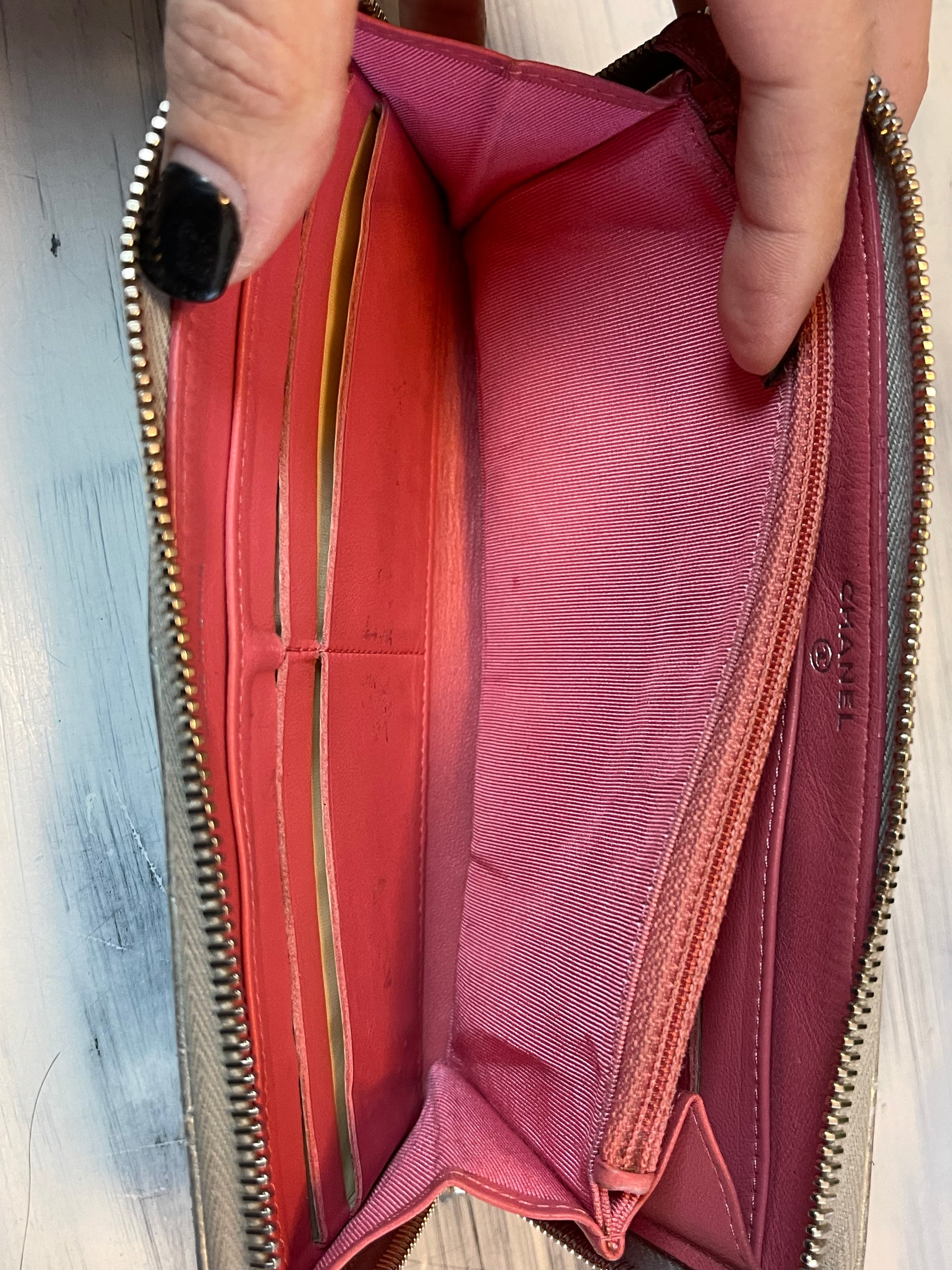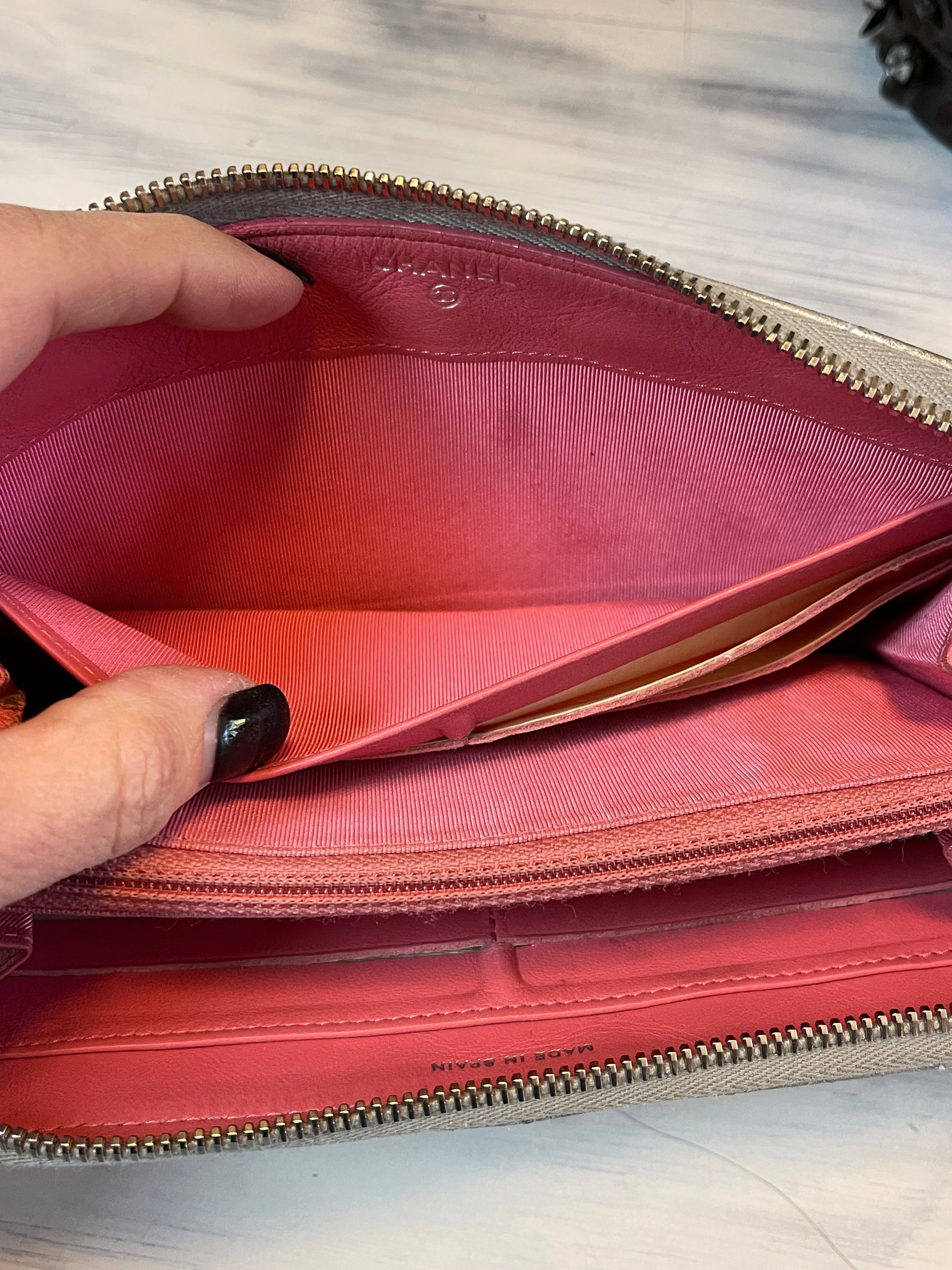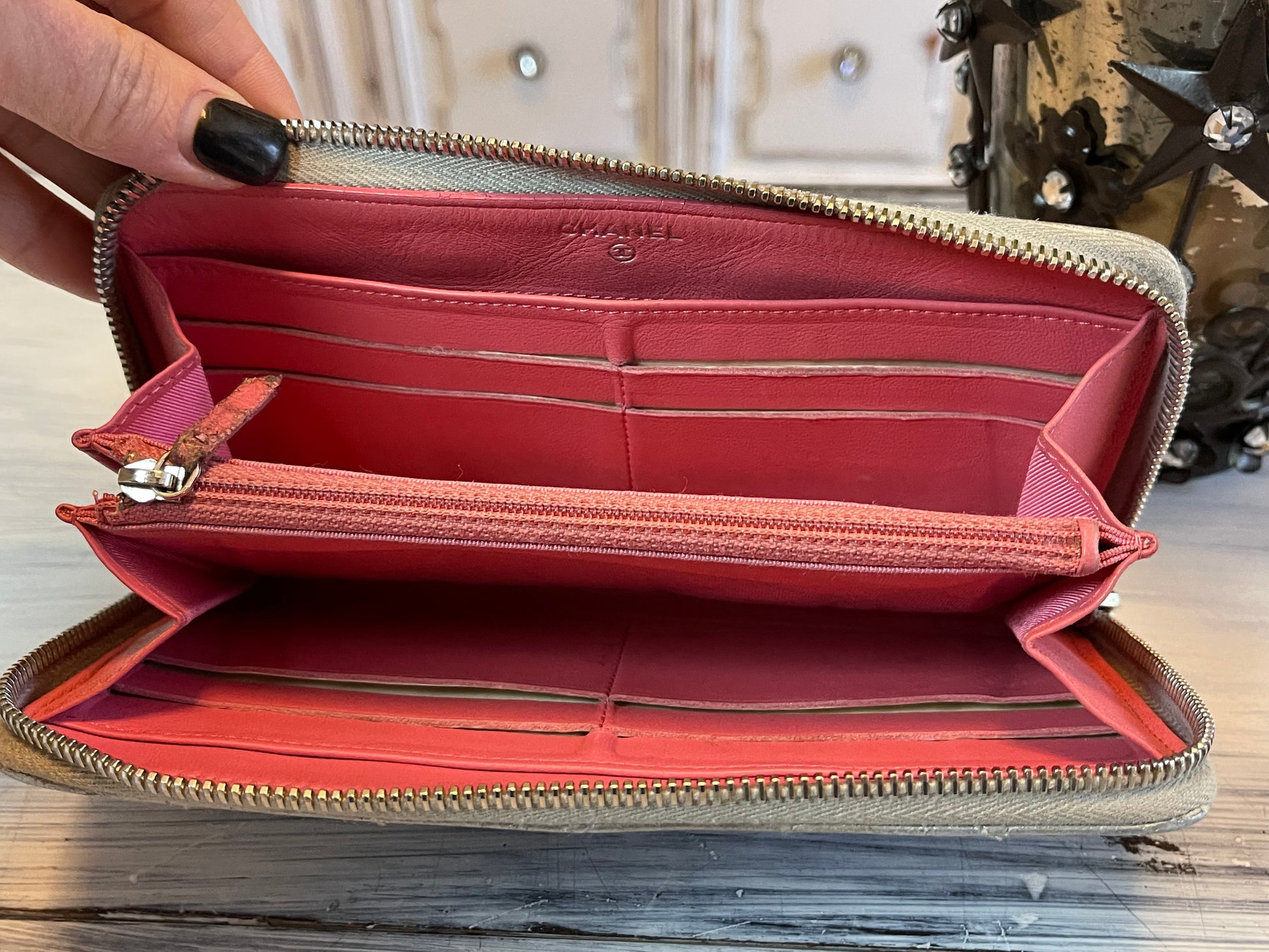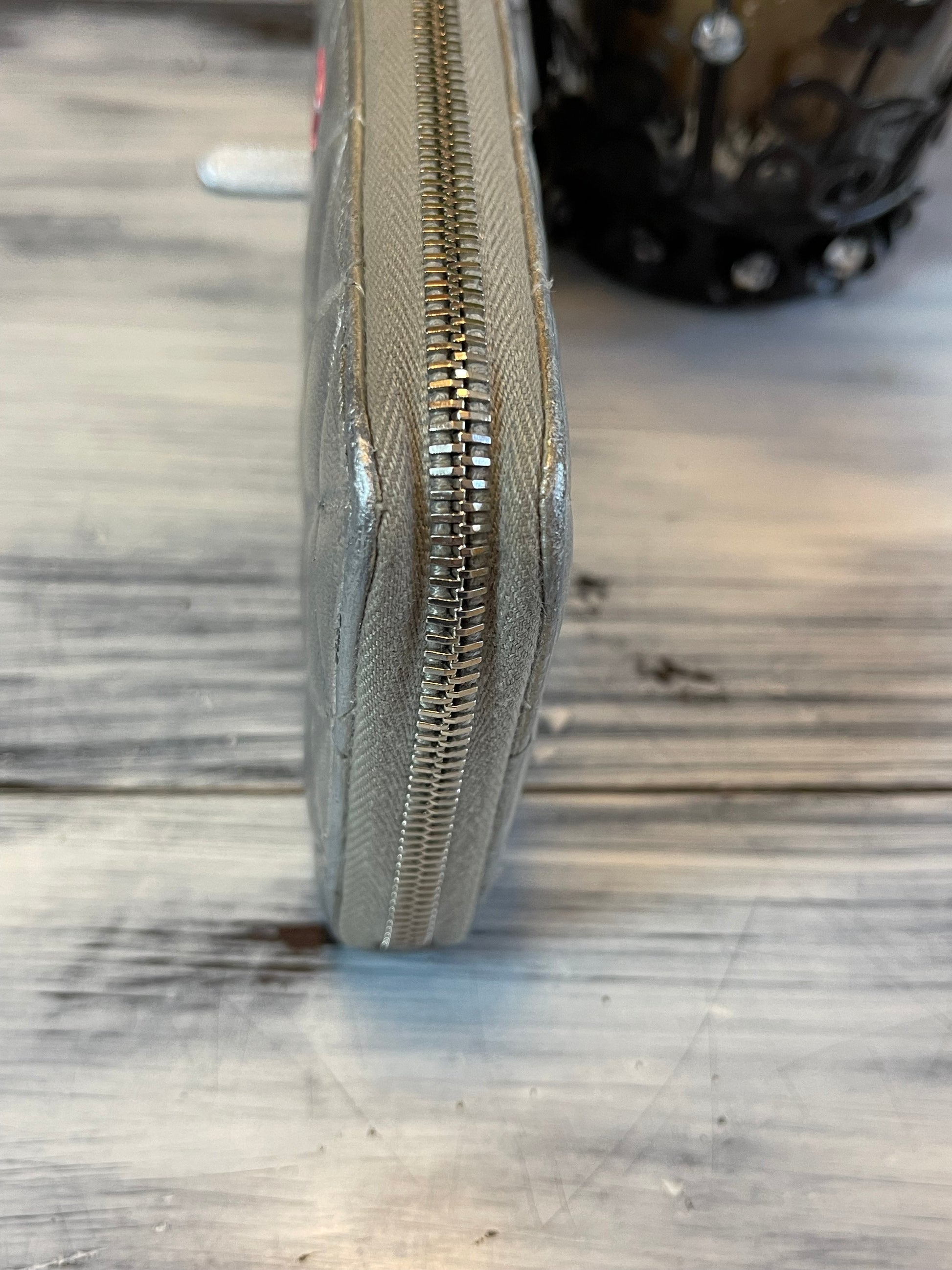 Chanel Quilted Mateslase Lambskin Silver Zip Around Wallet