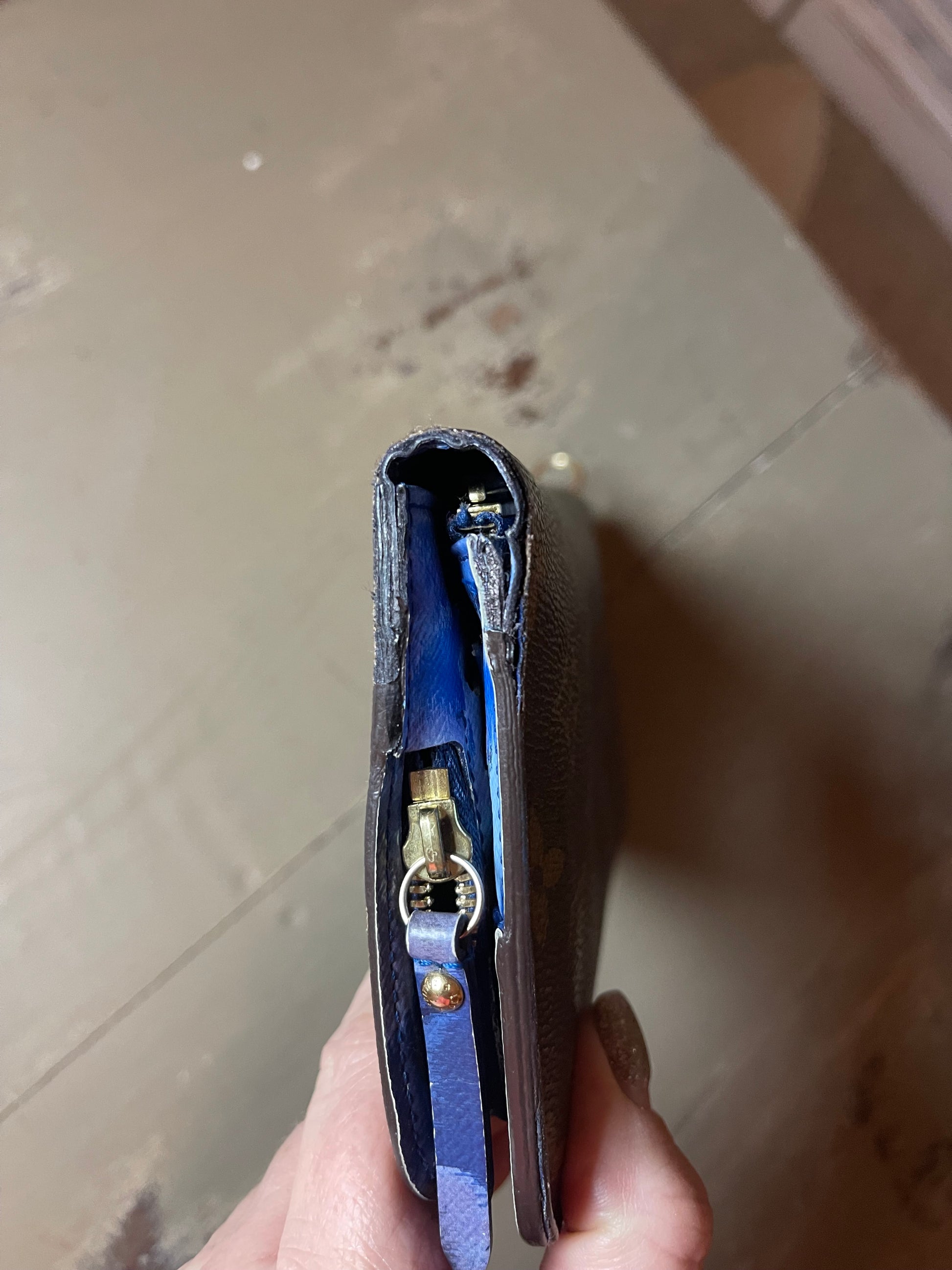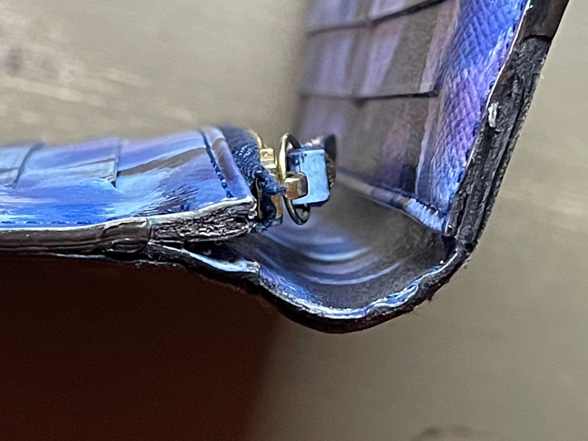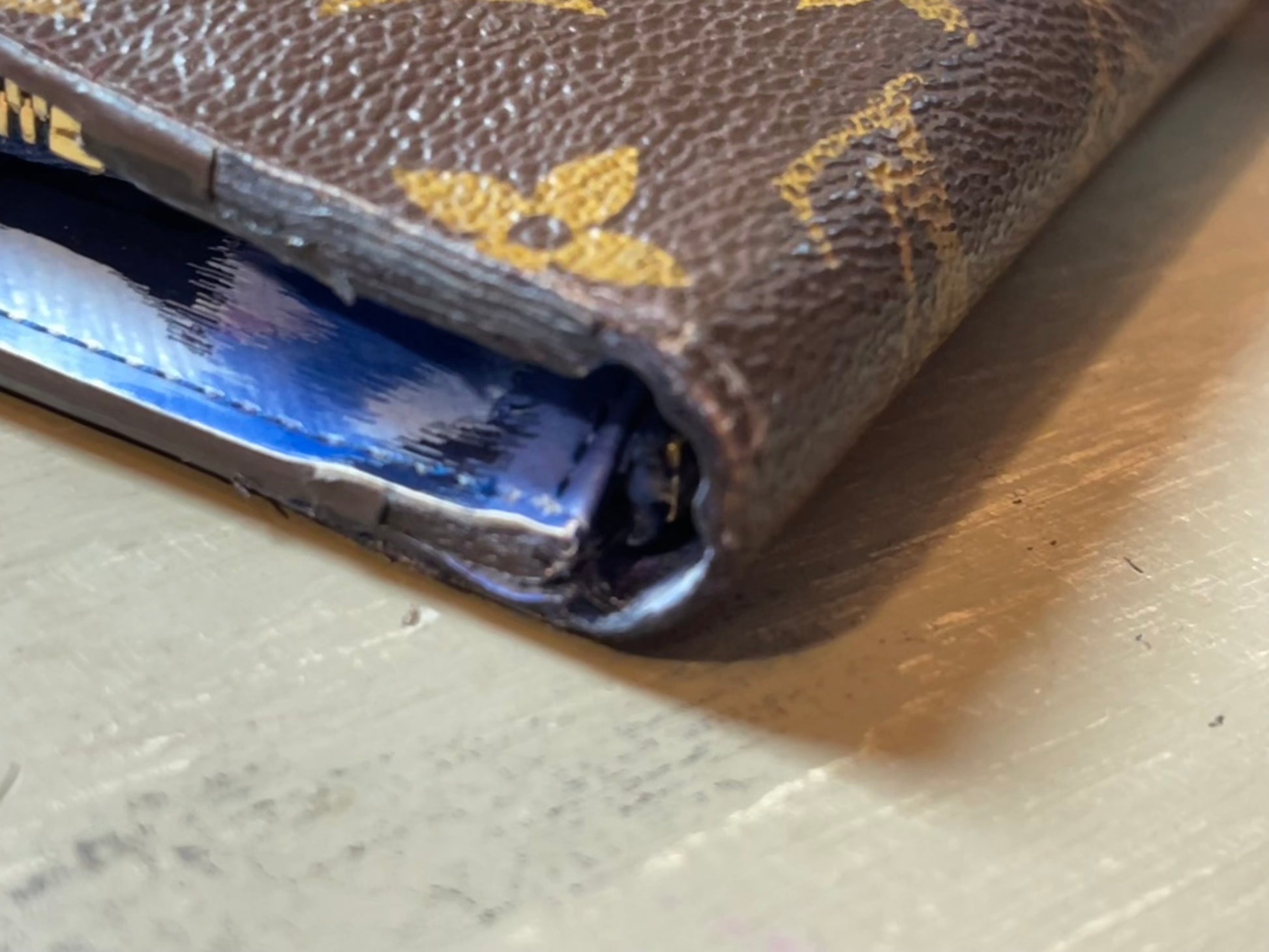 ✅ Slight cracking in edge coating along corners and folds, separation on cash pouch pocket