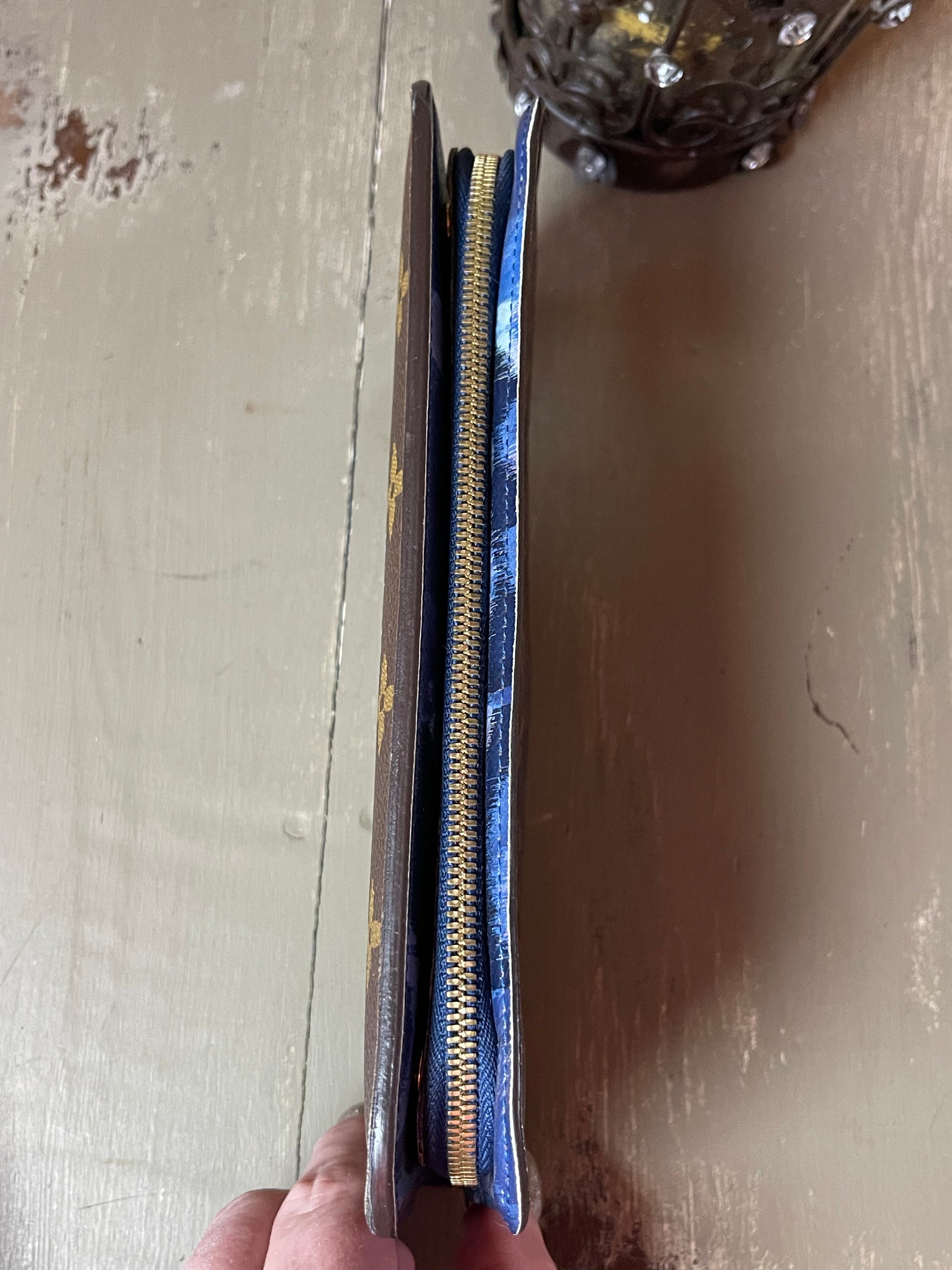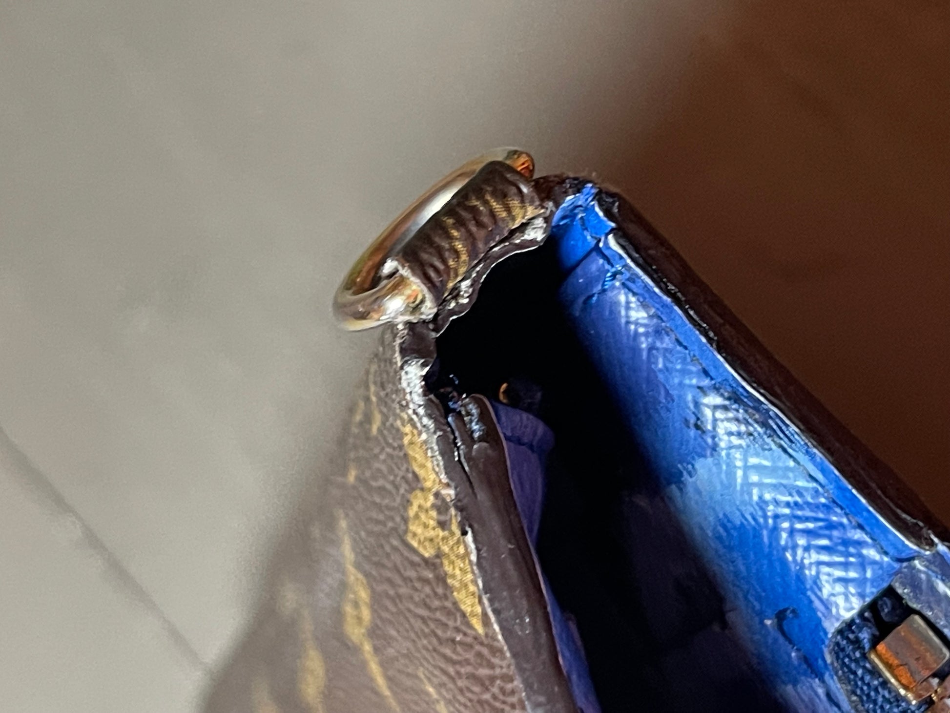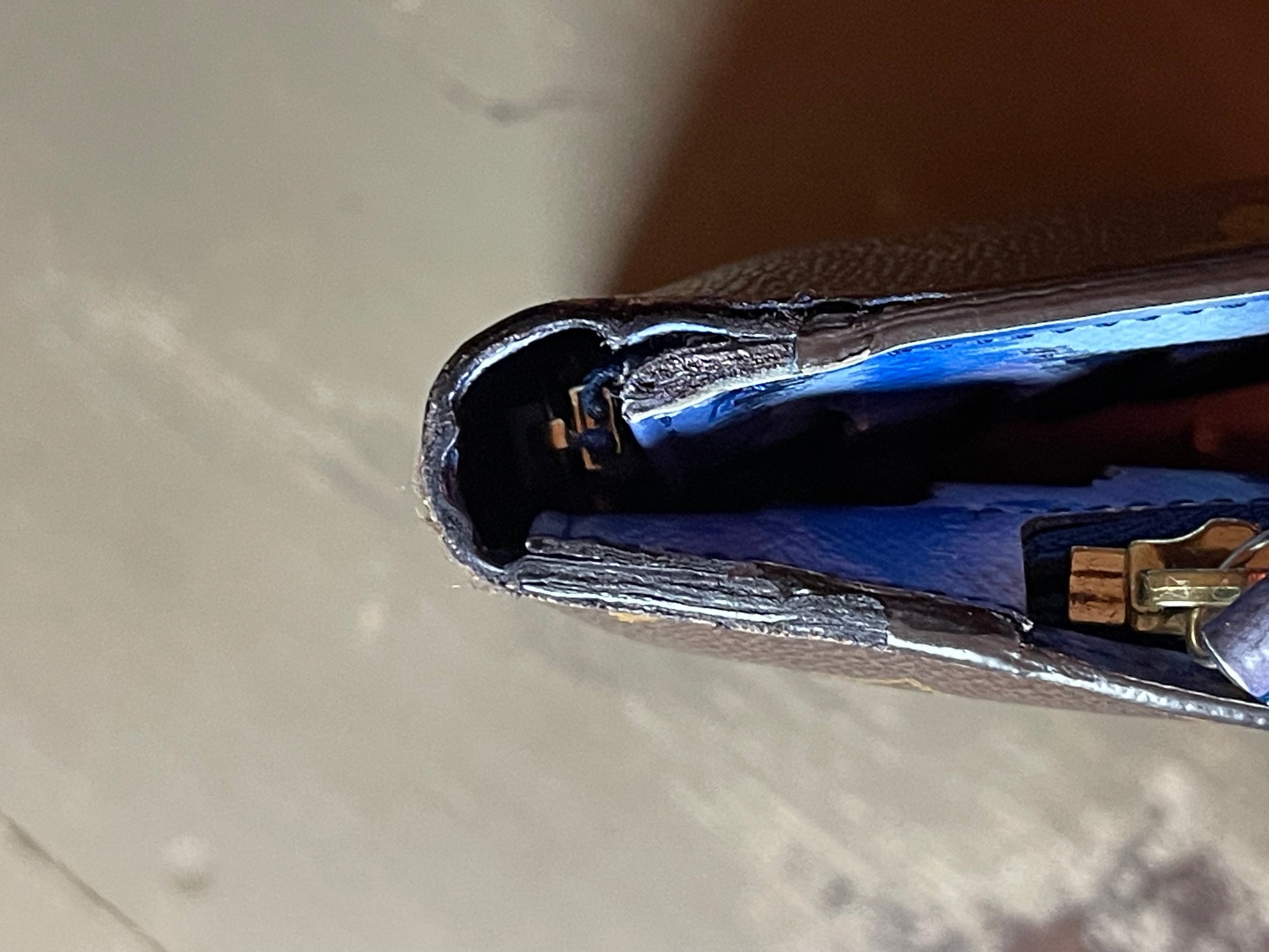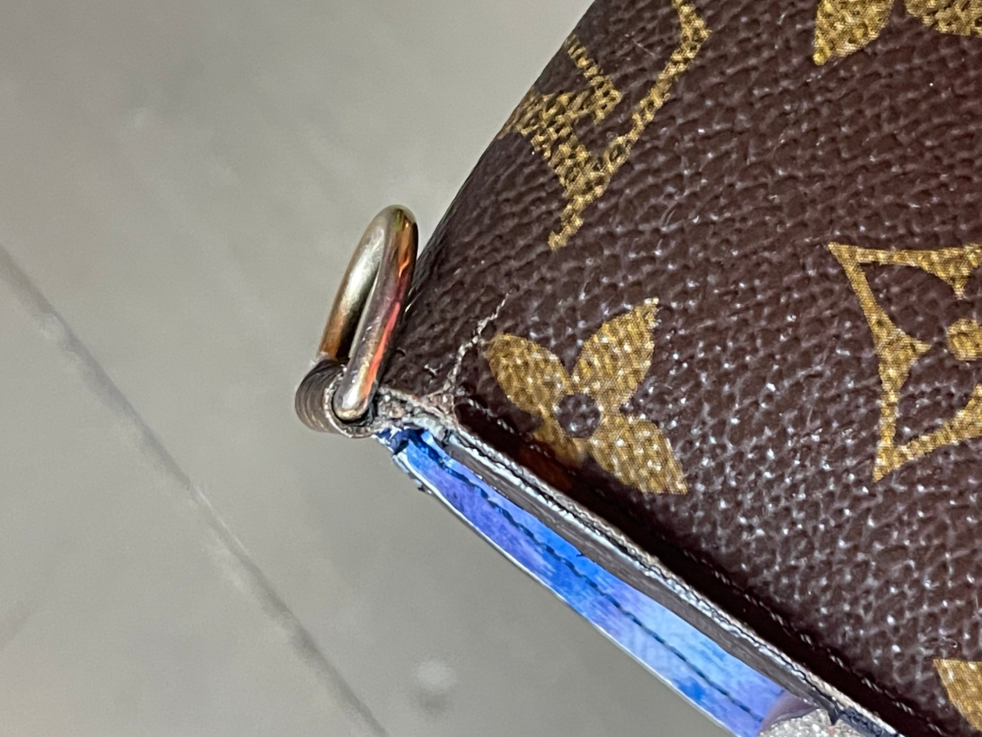 ✅ Slight cracking in edge coating along corners and folds, separation on cash pouch pocket